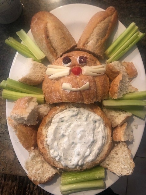 Looks like y'all were able to have fun on Easter! Cute Bunny with the veggies and dip!