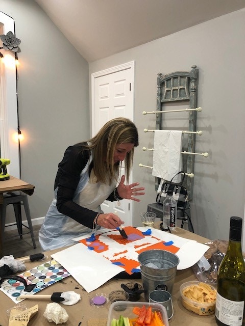 We have a cute little DIY studio in town called the Flower Bar Studio...one of my friends has a party each year and raises money for a wonderful organization in town called Windham Helping Hands. Well this year a few of us did not feel comfortable going in a larger group so we broke off and did our own special night...last time I went, I made a tray with our family name on it..I can't tell you how much I use the tray to serve appetizers when I am entertaining...this time I thought I would make something that Rob would love and decided on the Backyard BBQ sign where he can hang the grill utensils and have a bottle opener all in one- I loved the way it came out and he loved it even more FTW!