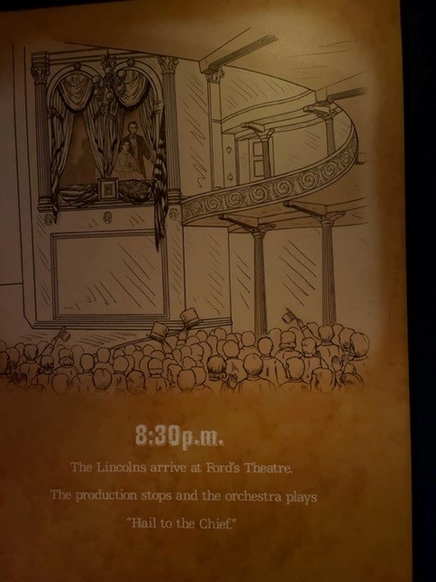 Then I remembered that we might be able to get into Ford's Theater (where President Lincoln was shot). As we walked out of the restaurant, we were trying to figure out if we could walk there and then we looked up and saw that it was right across the street- I kid you not!